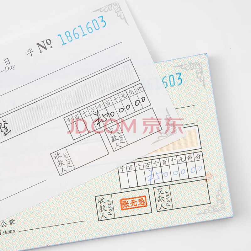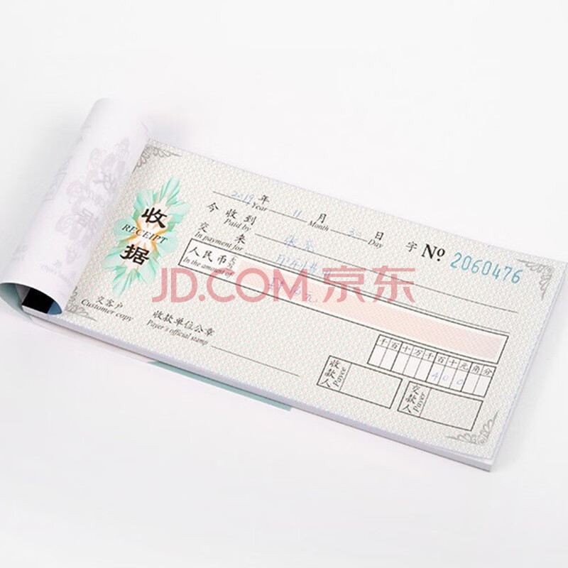 商品相册:旗牌(Shachihata)财会用品 防伪印花 两联收据单 无碳复写 48K易撕线 178*84mm 5本装 赠垫板 QV-148501第
