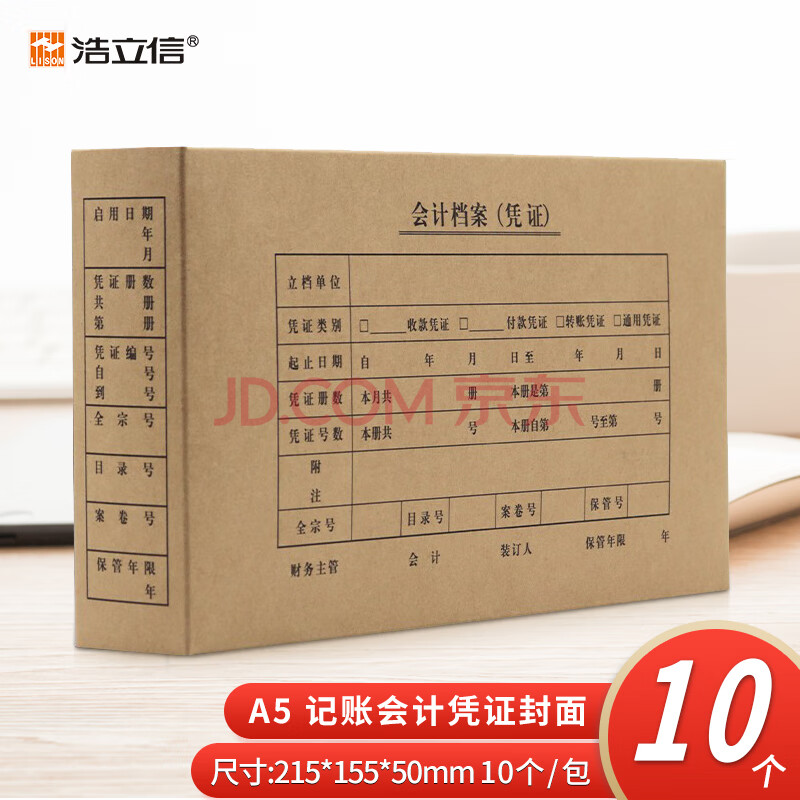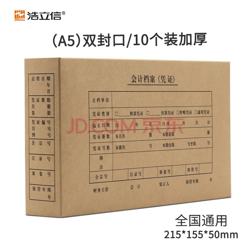 商品相册:浩立信(LISON)1510 a5 凭证封面 凭证盒会计盒 凭证双封口档案盒 A5凭证盒子10个/包 215*155*50mm第