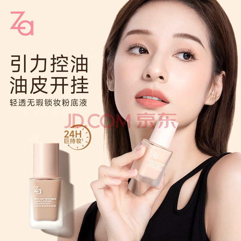 商品相册:姬芮(ZA)轻透无瑕锁妆粉底液遮瑕持久滋润控油不脱妆化妆品25ml(自然色)第