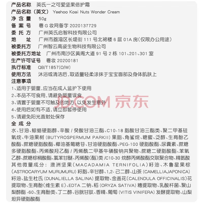 商品相册:英氏儿童面霜3-6岁 婴儿面霜宝宝润肤乳 宝宝面霜滋润坚果霜 50g+20g第
