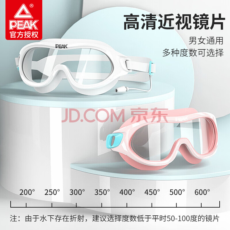 商品相册:匹克PEAK成人游泳镜男女高清防雾防水大框一体专业潜水连体耳塞游泳眼镜YS22158黑色350度第
