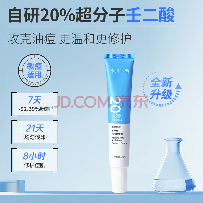 商品相册:希川科颜20%壬二酸祛痘精华霜 15g 改善黑头粉刺 去闭口面霜生日礼物第
