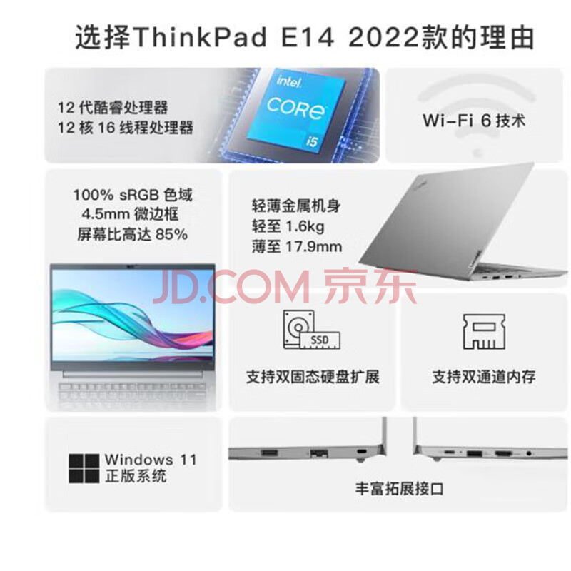 商品相册:联想ThinkPad E14 14英寸轻薄商务办公笔记本电脑(12代i7-1255U 40G内存1TB+1TB固态2G独显 win11定制款第
