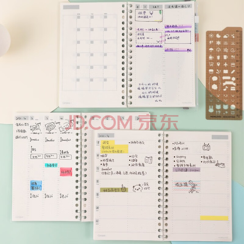 商品相册:国誉(KOKUYO)B6手账笔记本子Campus MO活页手帐本·本体 30张横版周计划 WCN-CDTA01第