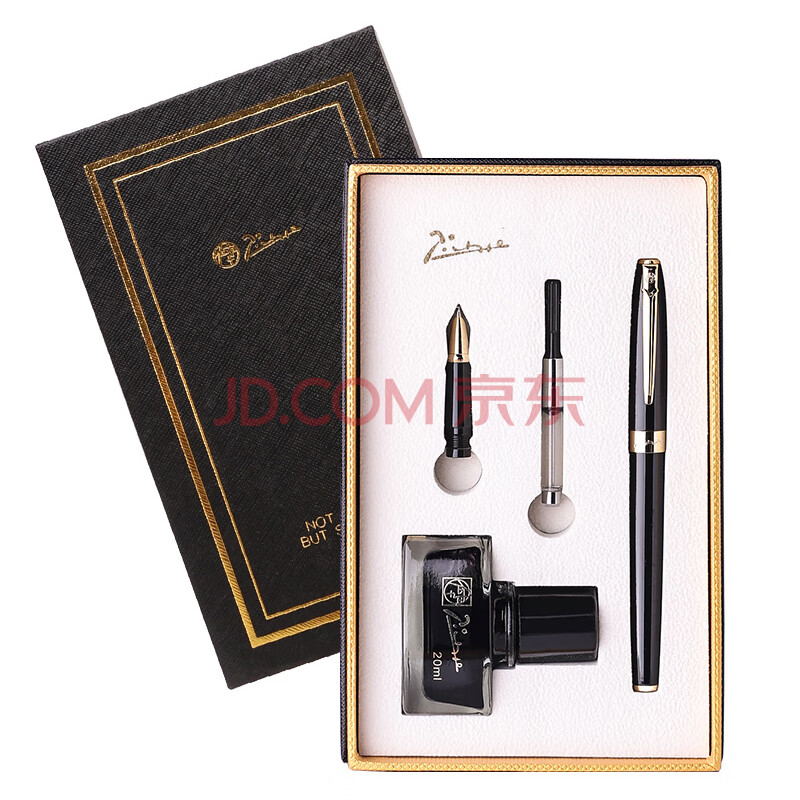 商品相册:毕加索(pimio)钢笔礼盒墨水套装开学礼物签字笔双笔尖0.5mm0.7mm成人学生练字笔美工笔T717亮黑金夹第
