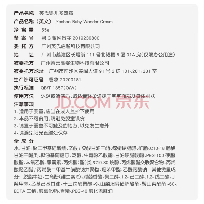 商品相册:英氏儿童面霜 婴儿面霜宝宝面霜凡士林护肤保湿润肤乳多效面霜55g*2瓶第