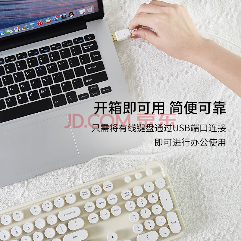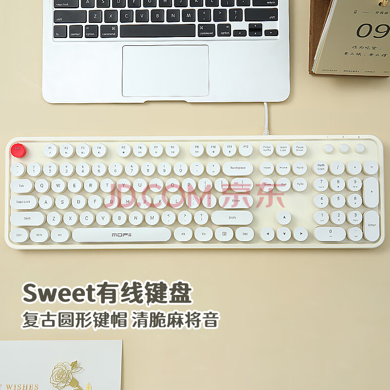 商品相册:摩天手(Mofii)Sweet有线 键盘女生巧克力麻将音复古圆点台式机笔记本办公键盘 米白色第