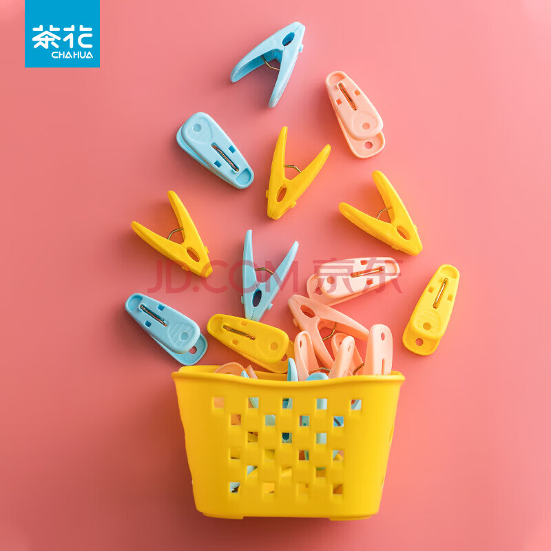 商品相册:茶花衣架夹子晾衣夹子 夹衣服晒衣夹床单防风夹大夹子袜夹被夹 24只第