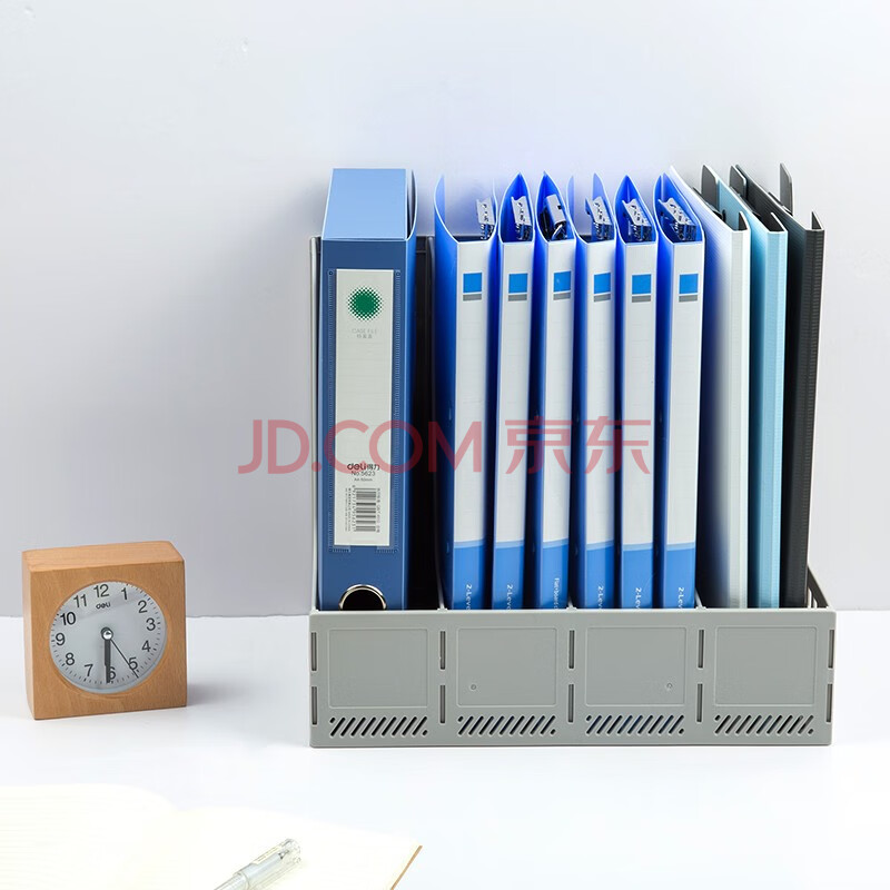 商品相册:得力 (deli) 文件框33777四联文件框文件栏文件架 书立架 办公文件夹收纳盒桌面整理置物架 灰色第