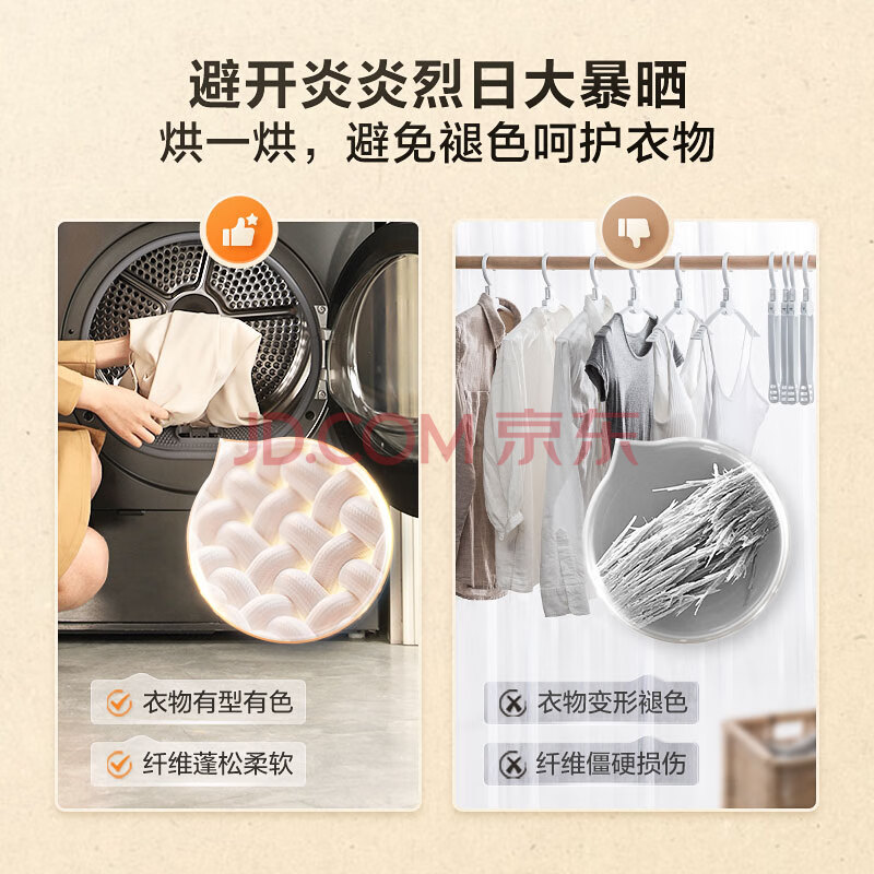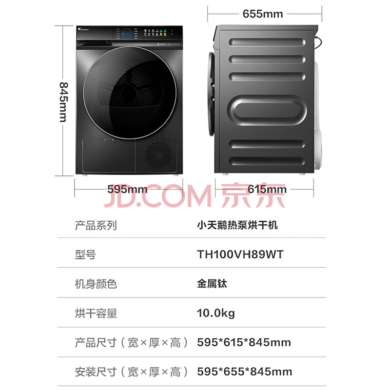 商品相册:小天鹅(LittleSwan) 烘干机 热泵式 干衣机家用 紫外线除菌 BLDC变频电机 10公斤 京东小家 TH100VH89WT第