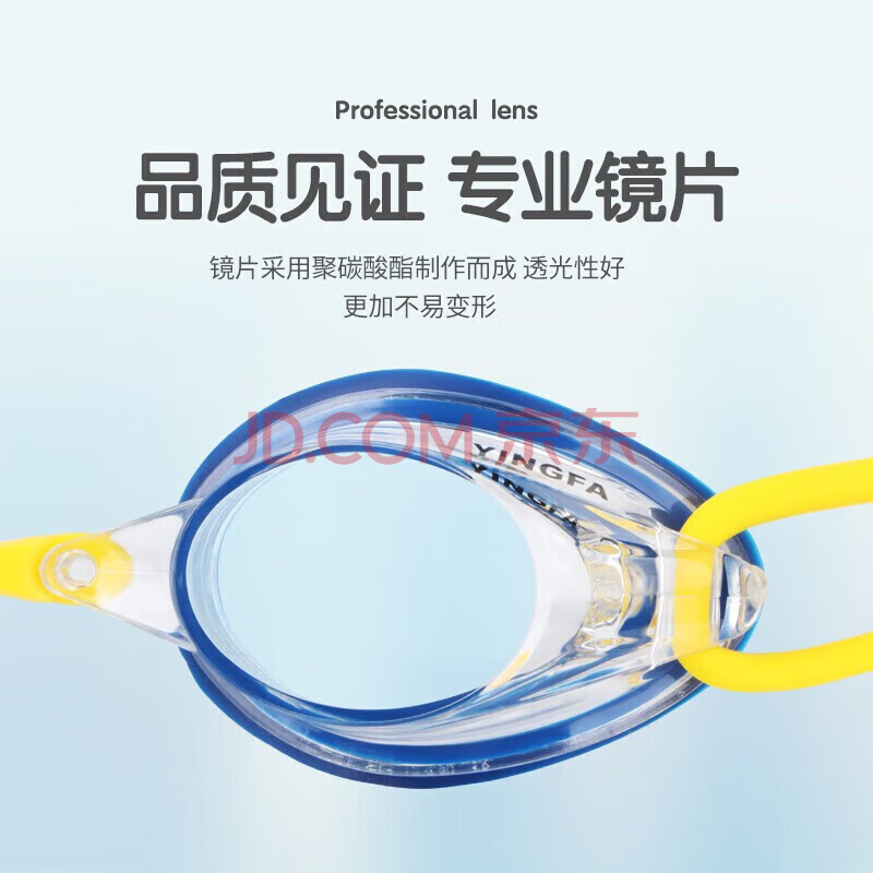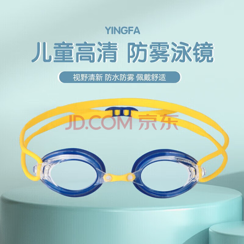 商品相册:英发(YINGFA)儿童泳镜 高清防雾舒适防水青少年专业竞速小框游泳眼镜 土黄\蓝第