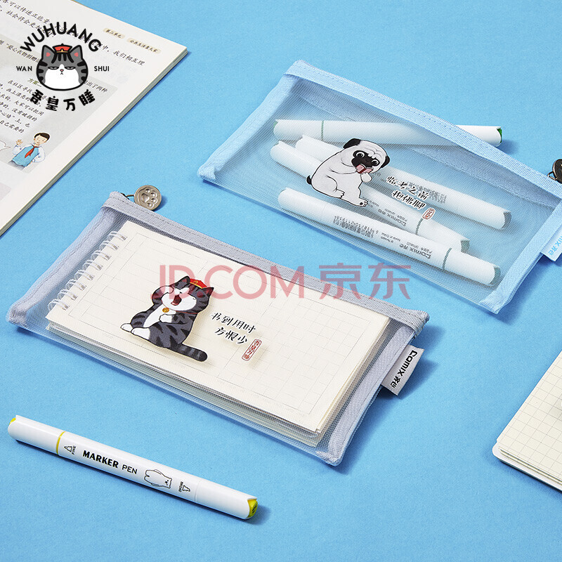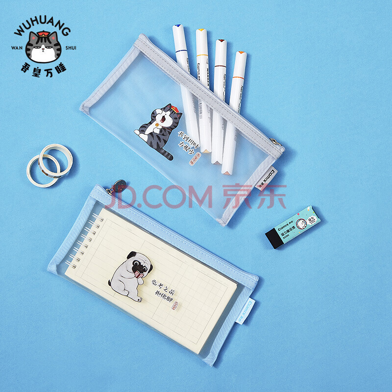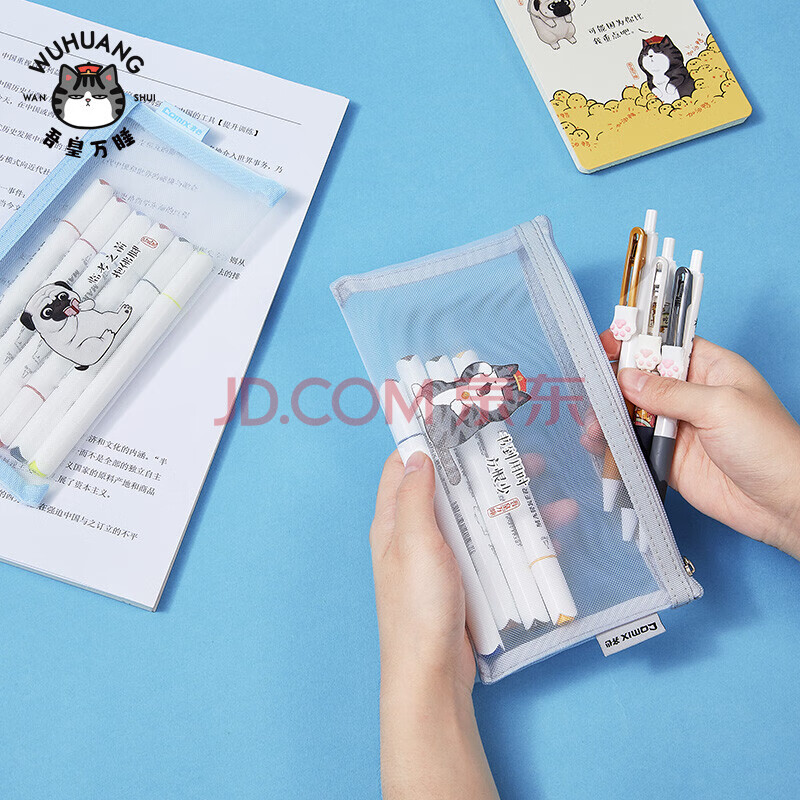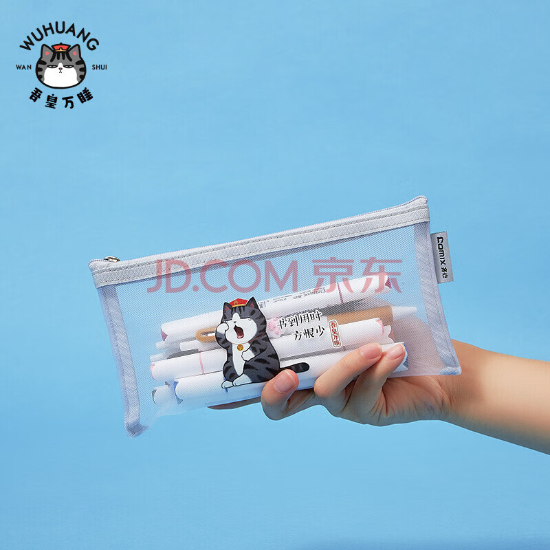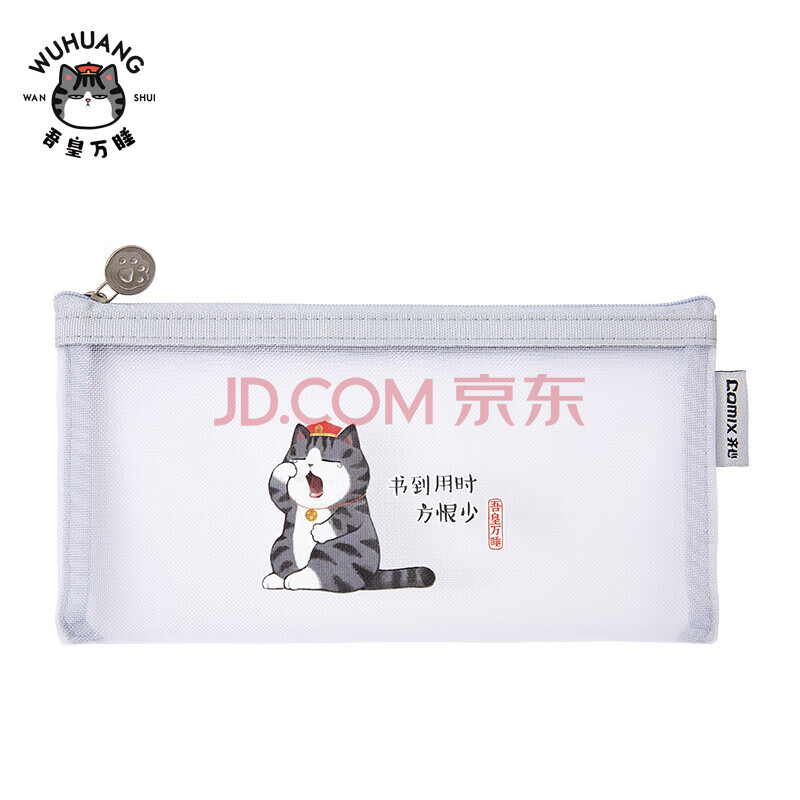 商品相册:齐心(Comix)小学生透明网纱笔袋 吾皇万睡正版IP联名 考试专用文具袋 文具盒 单个装A4/3颜色随机第