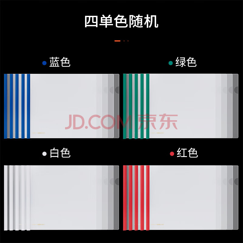 商品相册:得力(deli)抽杆夹横款63101 A4加宽加厚9mm透明拉杆夹抽杆文件夹彩色抽杆报告夹简历夹文件资料夹5个装第