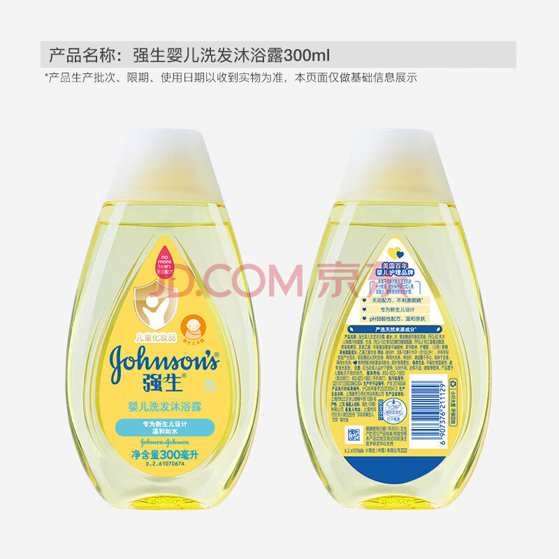 商品相册:强生(Johnson)婴儿沐浴露洗发水二合一300ml 新生儿宝宝温和无泪配方沐浴液第
