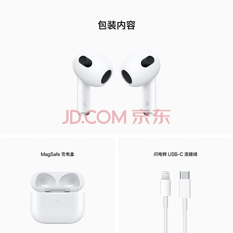 商品相册:Apple苹果AirPods (第三代) 配MagSafe无线充电盒 Apple无线蓝牙耳机 送女友老婆七夕第