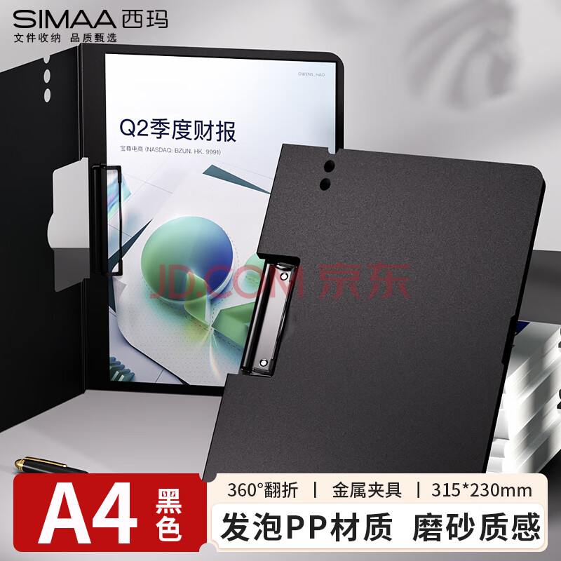 商品相册:西玛(SIMAA)A4横式折页板夹文件夹 书写板夹会议夹写字板诗朗诵签约塑料夹板 试卷资料收纳夹 黑色8476第