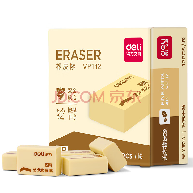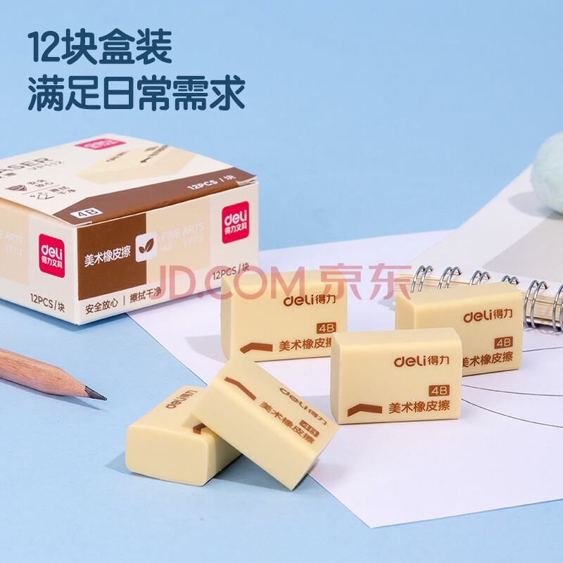 商品相册:得力(deli)12块4B自动铅笔橡皮擦 美术中考高考绘图橡皮柔软易擦少屑学生开学文具礼物第