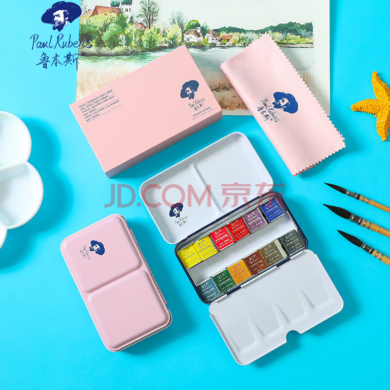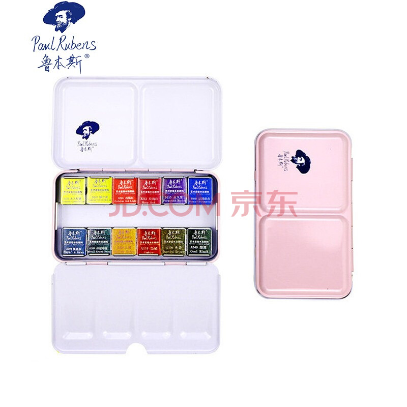 商品相册:鲁本斯(PaulRubens)12色固体水彩颜料套装清新款便携水粉色彩颜料儿童初学美术生工具-粉色盒010903007第