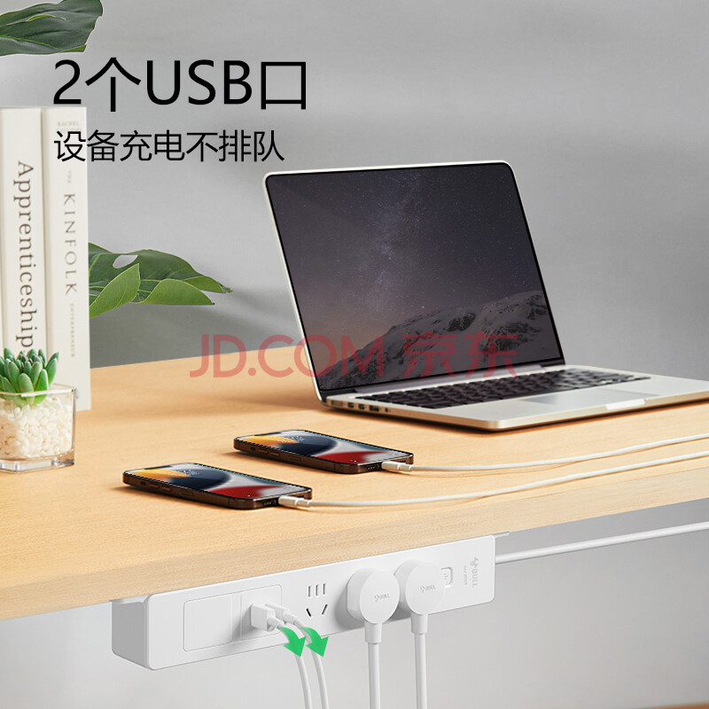 商品相册:公牛(BULL)免开孔 桌下式嵌入式插座/插线板/插排/排插/接线板/拖线板 多功能桌面插座 3位+2USB全长1.8米第