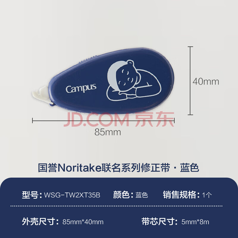 商品相册:国誉(KOKUYO)Noritake campus联名原纸色替芯式修正带修改带涂改带 本体 蓝色一个8米 WSG-TW2XT35B第