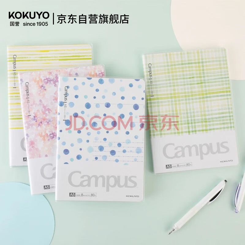 商品相册:国誉(KOKUYO)B5笔记本子胶套本Campus水彩絮语封套本收纳记事本 8mm点线 80页 粉色 WSG-NBDDB580P第