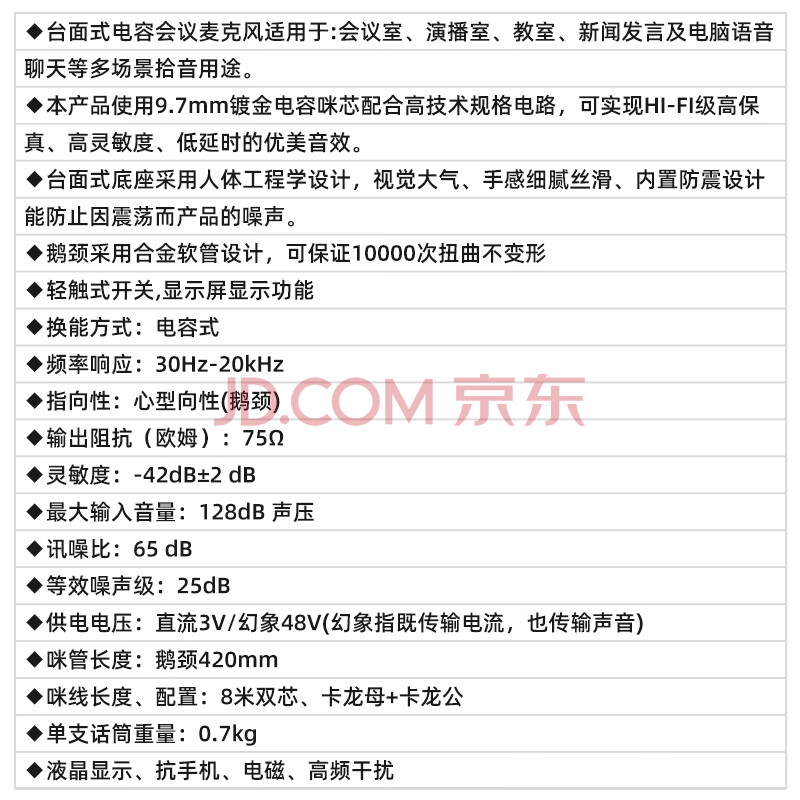 商品相册:唯舒 YC610-1 有线电容麦克风卡农口卡侬接口会议桌面演讲广播鹅颈款话筒48V供电麦克风可定制接口第