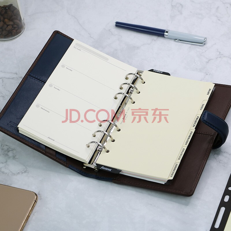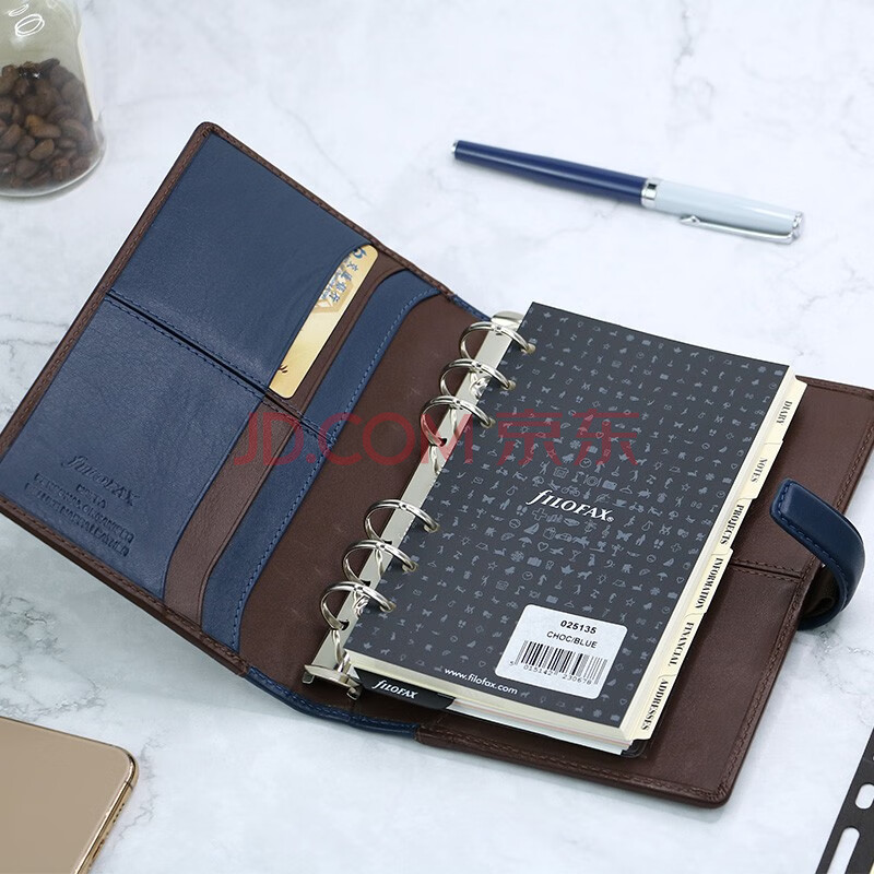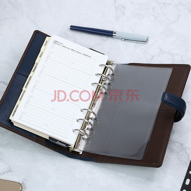 商品相册:Filofax笔记本英国高档牛皮活页手帐记事本多功能商务办公会议记录日程本Nappa系列A6蓝拼巧克力025135第