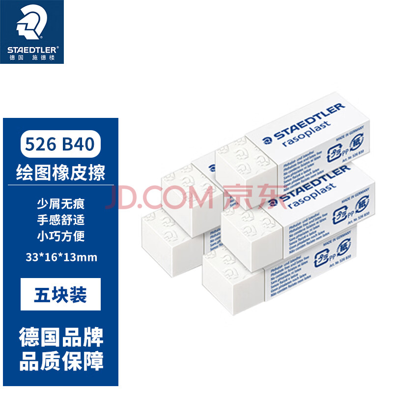 商品相册:施德楼(STAEDTLER)橡皮擦 德国进口学生用橡皮少屑干净开学必备用品素描绘画办公 白色小号5块装526B40第