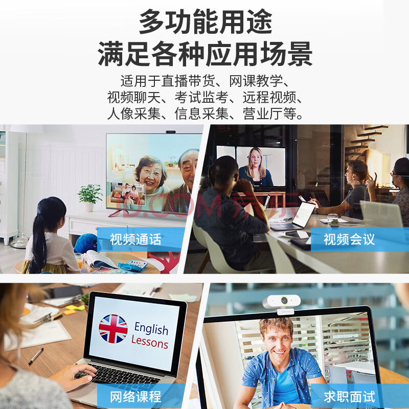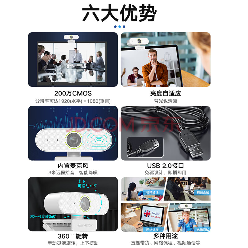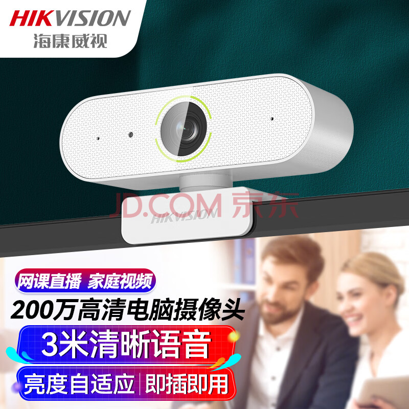 商品相册:HIKVISION海康威视电脑摄像头1080P高清USB免驱带麦克风摄像机网课家用直播视频会议E12第