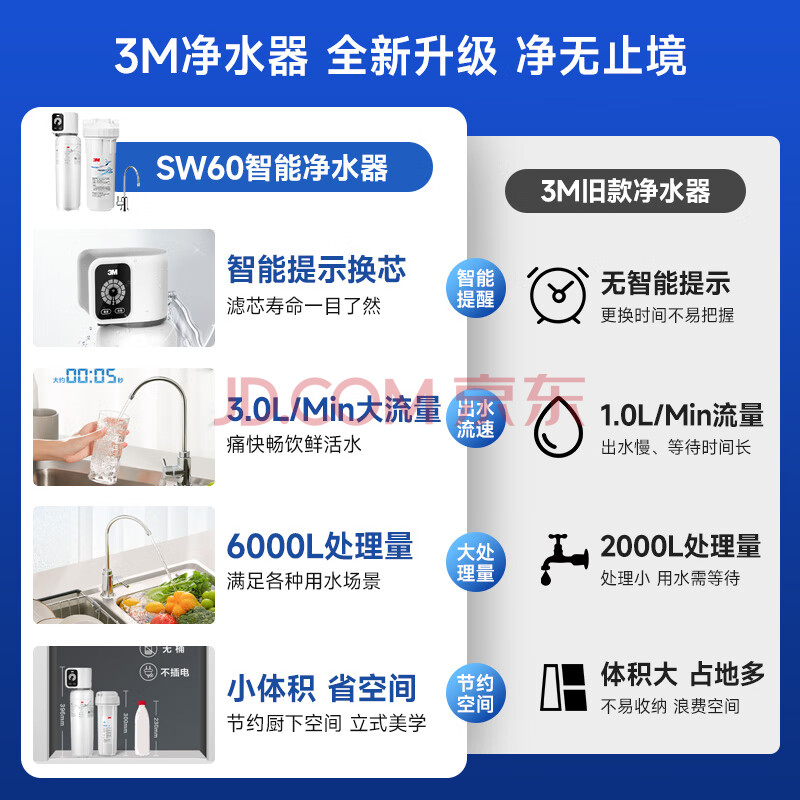 商品相册:3M净水器小甜矿家用净水机矿物质0废水直饮智能过滤器3L/分大流量8000升处理量SW60第