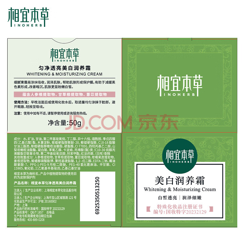 商品相册:相宜本草匀净透亮美白润养霜50g(美白霜 滋润保湿)第