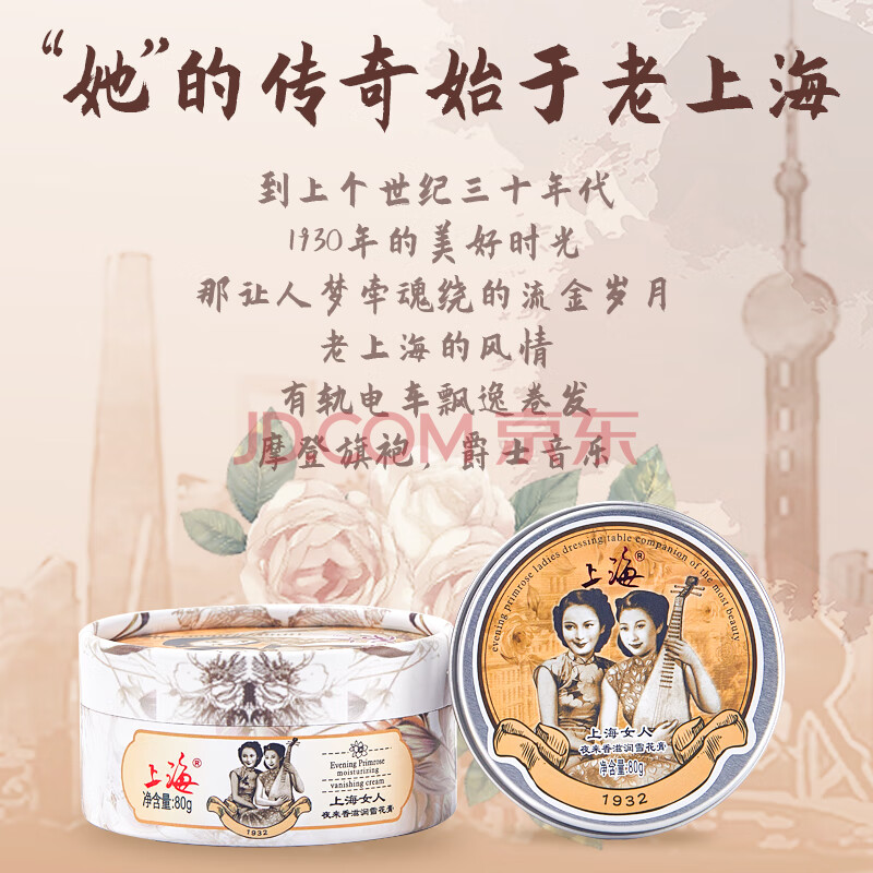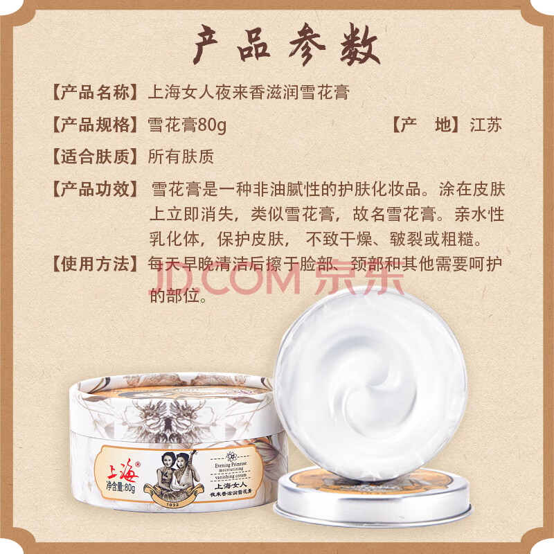 商品相册:上海女人夜来香滋润雪花膏80g精油护手霜万紫千红润肤脂面霜高铁同款第
