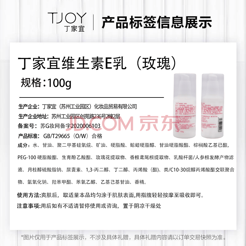 商品相册:丁家宜维生素e乳玫瑰100g补水保湿乳液面霜护手润肤霜护肤品男女可用第1张/共8