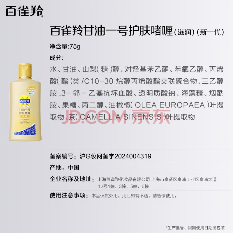 商品相册:百雀羚甘油一号护肤啫喱170g维C甘油脸部护肤补水保湿滋润生日礼物第