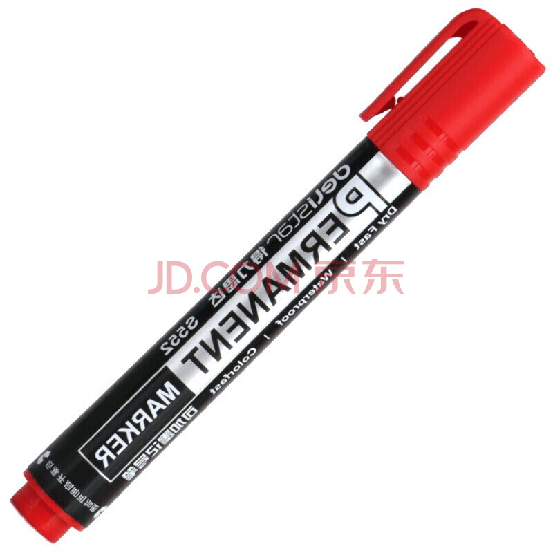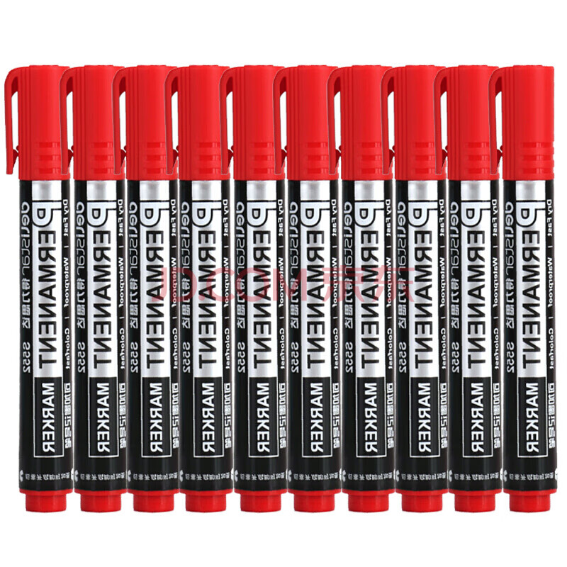 商品相册:得力(deli)记号笔s552红色可加墨油性笔不可擦物流包装笔10支装第