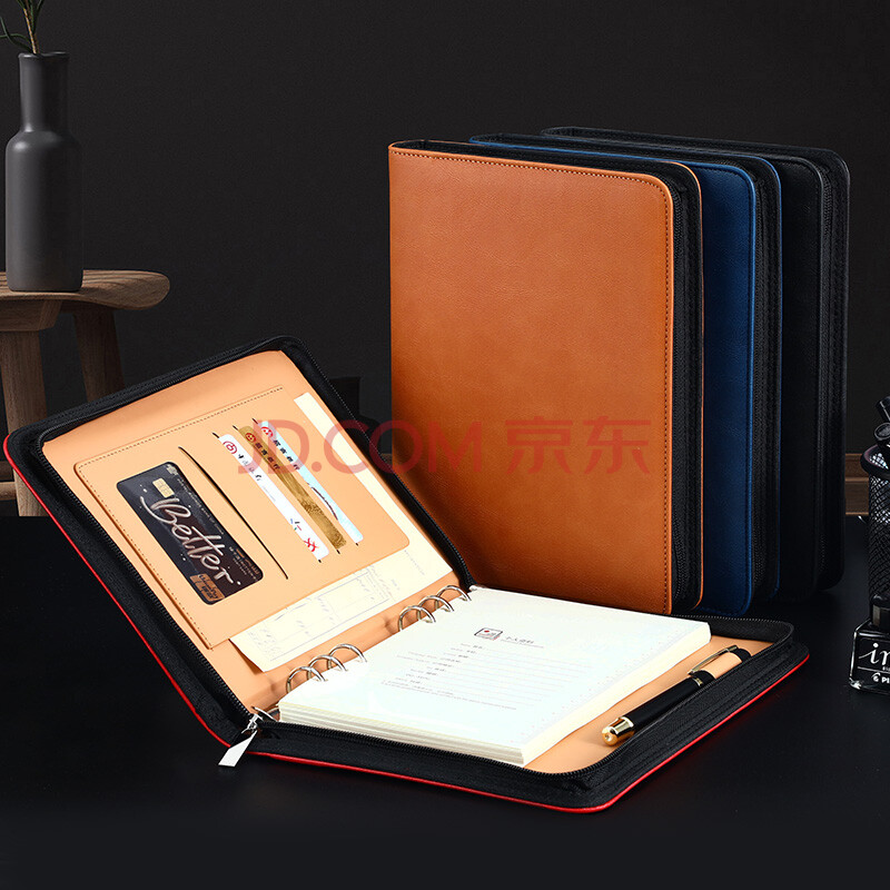 商品相册:嘉然恒 a5商务活页笔记本子多功能拉链包式记事本可拆卸替换内芯25K简约会议记录本工作日记本可定制 棕色第