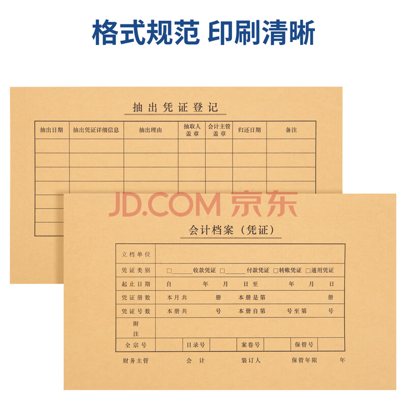 商品相册:得力(deli)KPJ103记账凭证封面 发票版会计凭证装订封皮 100张/袋 财务用品 22014第