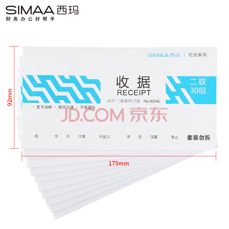 商品相册:西玛(SIMAA)二联单栏收据 48开 175*92mm 30组/本 10本装 财务手写收据单无碳复写单据本第