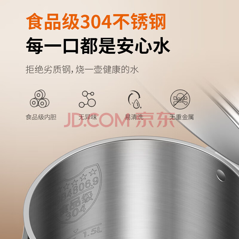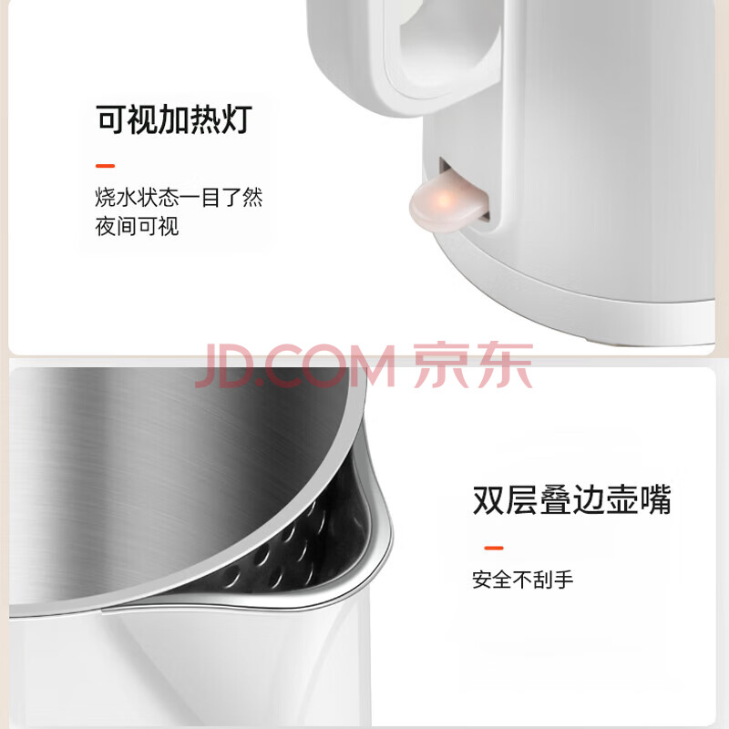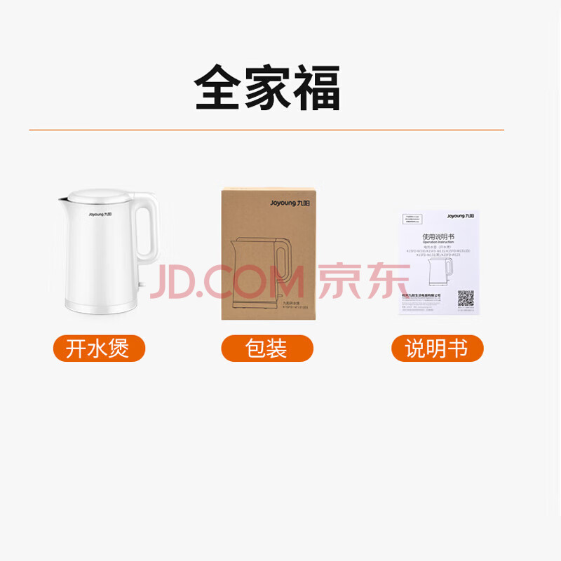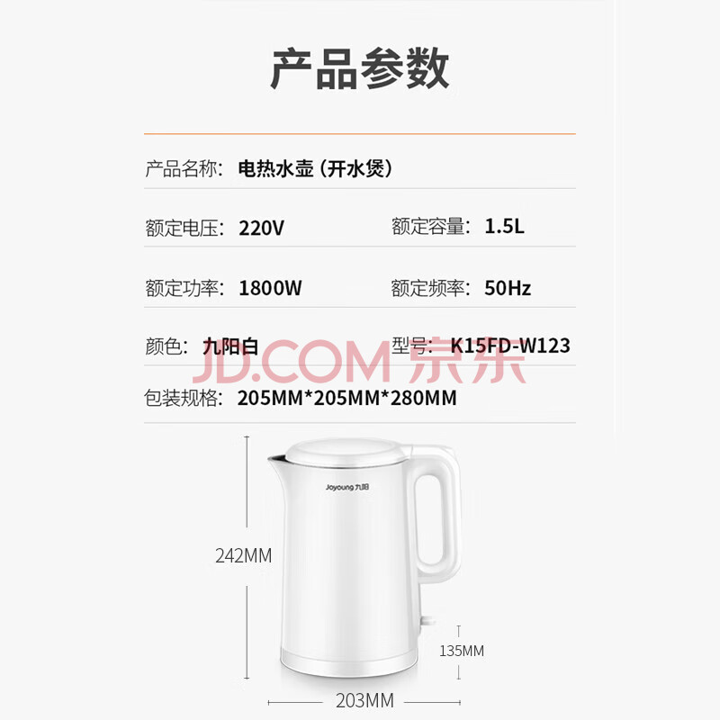 商品相册:九阳(Joyoung)电热水壶 烧水壶电水壶 双层壶体 隔热防烫 优质温控 1.5升 K15FD-W123【软装】第