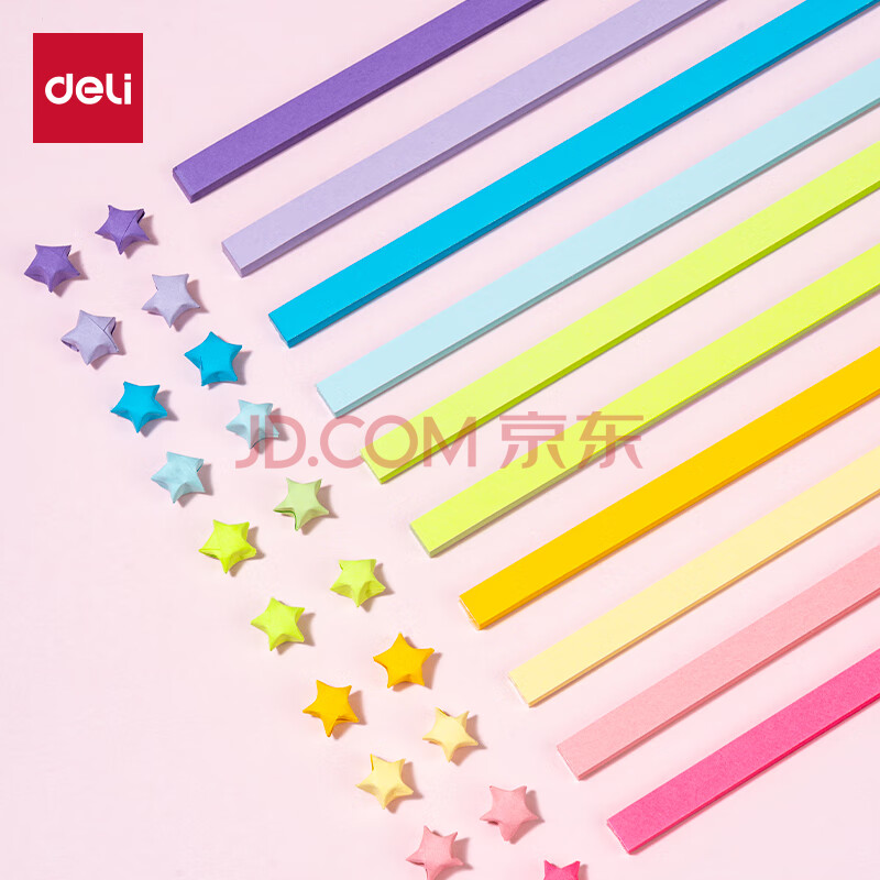 商品相册:得力(deli)500条10色星星折纸 手工彩纸幸运星许愿祝福星纸条五角星纸叠小星星 生日礼物文具送礼好物第