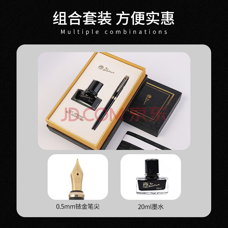 商品相册:毕加索(pimio)钢笔礼盒墨水套装签字笔高端商务成人新年礼物男女学生书法练字礼品0.5mmT717亮黑金夹第