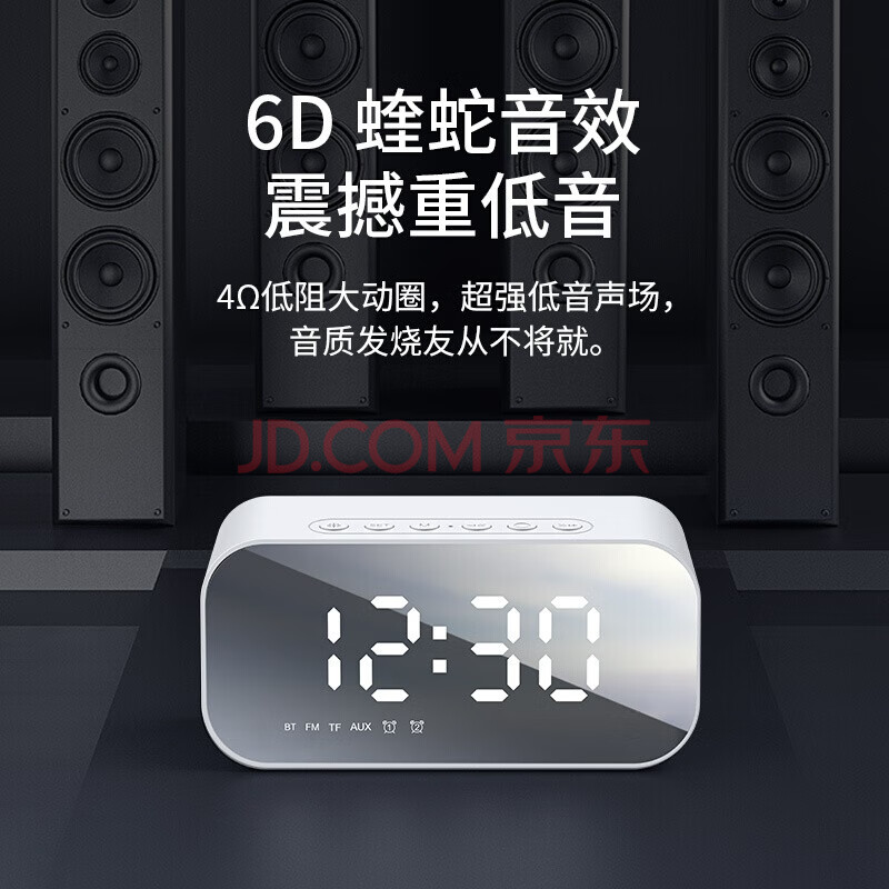 商品相册:海威特(Havit)【20万好评】M3蓝牙音箱智能时钟闹钟镜面全屏 迷你便携低音炮无线插卡收款音响 皎洁白第