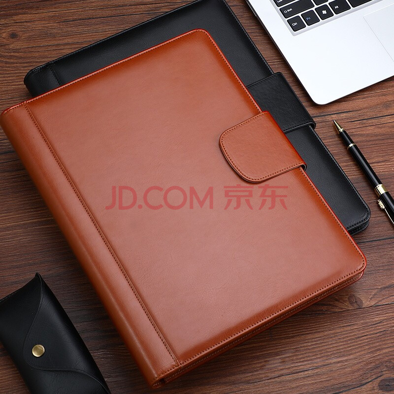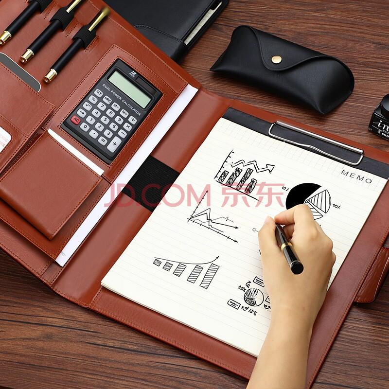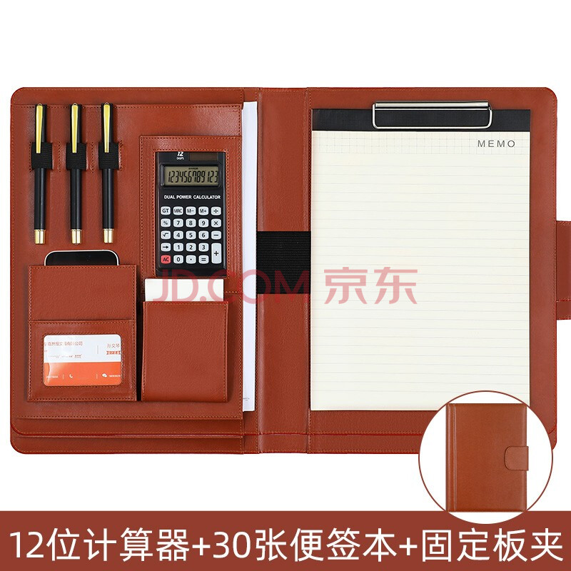 商品相册:嘉然恒 A4多功能文件夹商务皮质经理夹大耳朵款汽车4S店房产销讲夹销售夹带计算器便签本可定制 棕色第