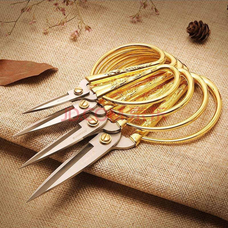 商品相册:三木(SUNWOOD)190mm不锈钢龙凤呈祥结婚开业剪彩居家剪家用彩金剪刀 91121 第