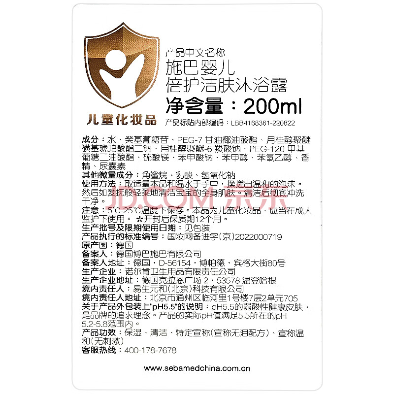 商品相册:施巴(Sebamed)婴儿沐浴露200ml第