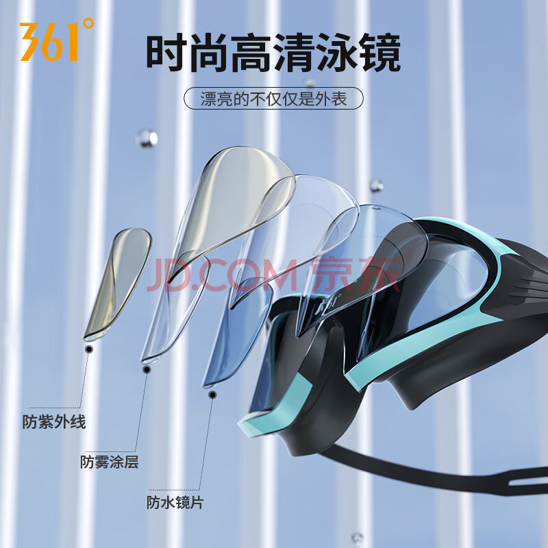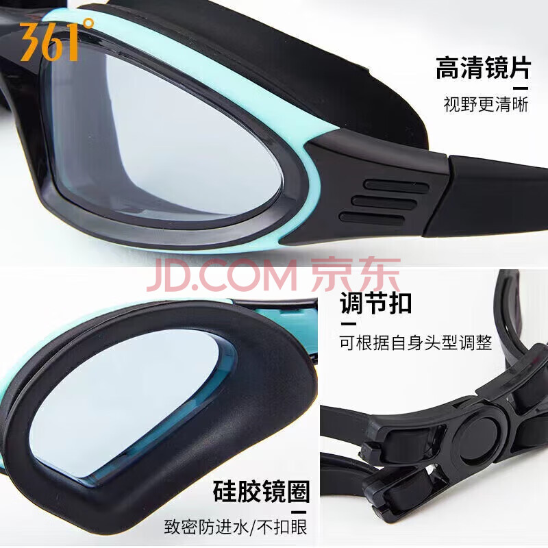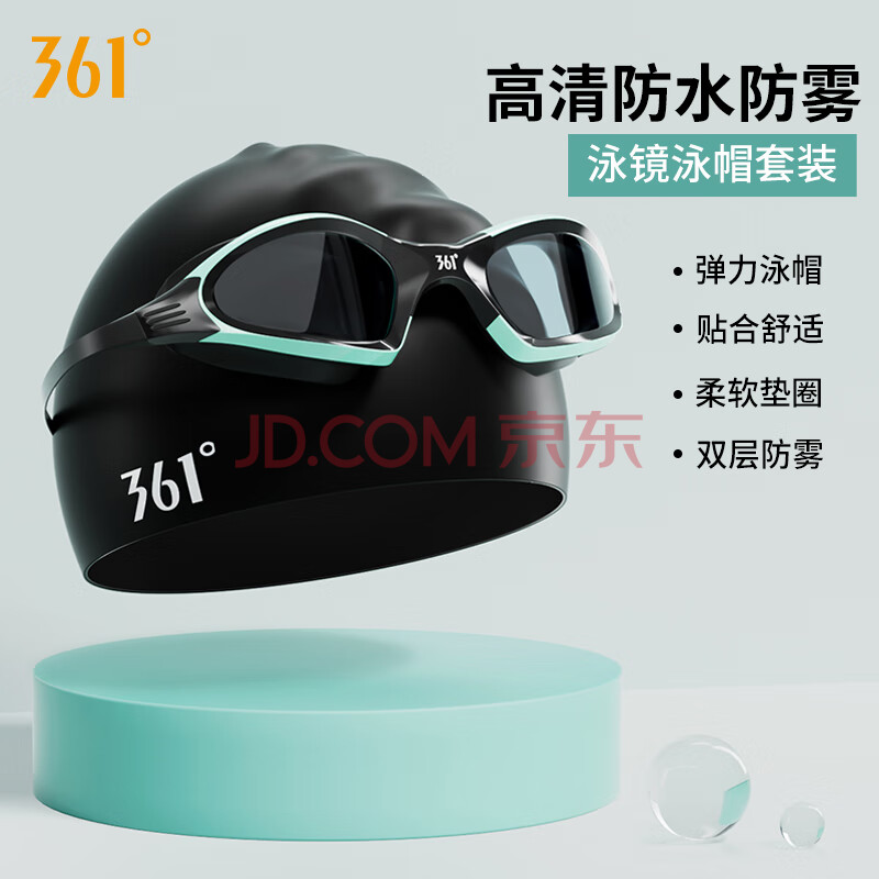 商品相册:361°泳镜套装男女高清平光泳镜泳帽套装游泳眼镜硅胶游泳帽套装第