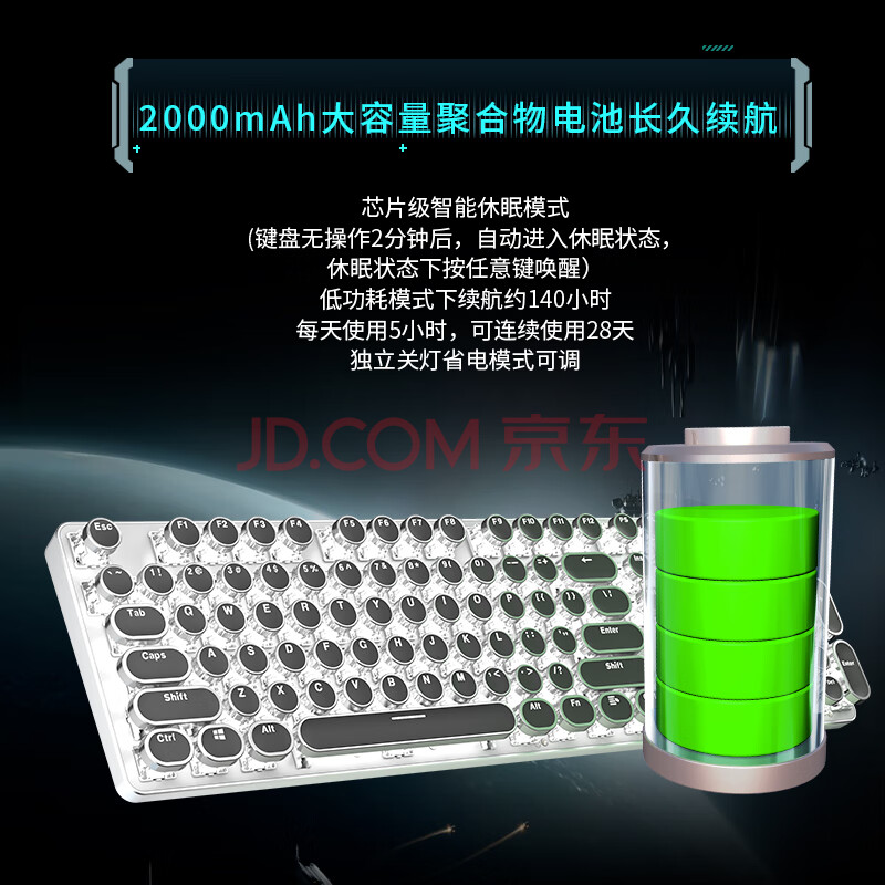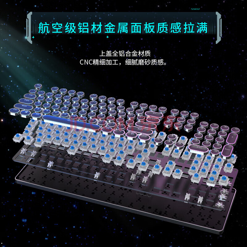 商品相册:前行者(EWEADN)TK950无线蓝牙朋克机械键盘鼠标套装有线三模办公游戏电脑笔记本黑轴复古外设104键 黑色白光第