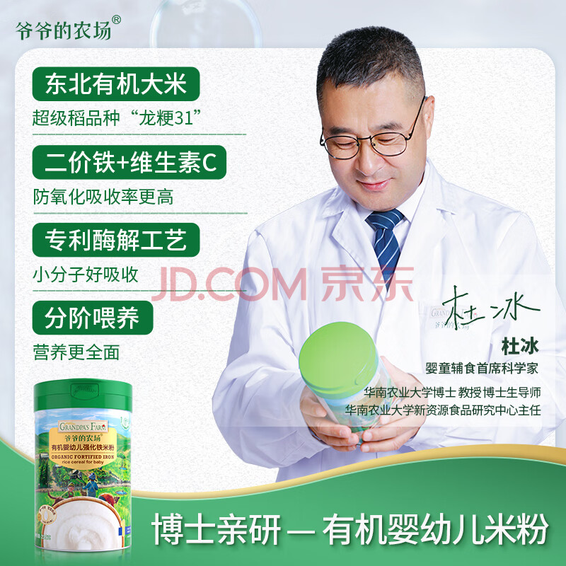 商品相册:爷爷的农场有机原味婴幼儿高铁米粉6-12个月225g米糊易冲泡辅食维C加铁6月+第
