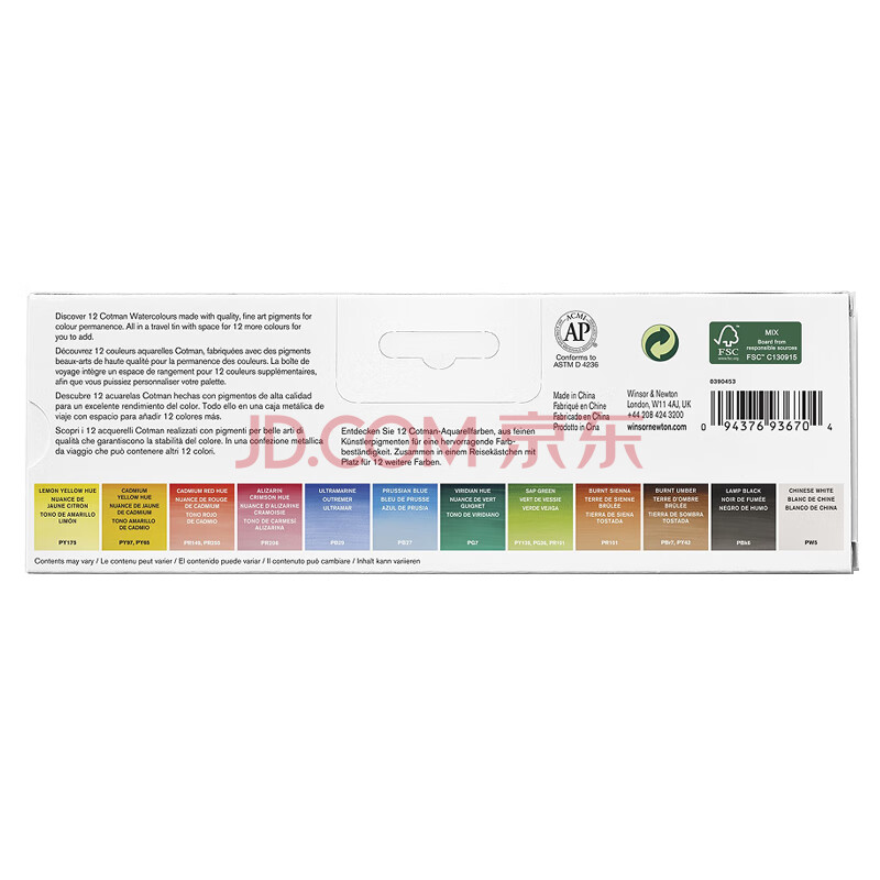 商品相册:温莎牛顿【弗洛伊德同品牌】歌文水彩颜料固体水彩户外写生水彩绘画颜料金属盒套12色第