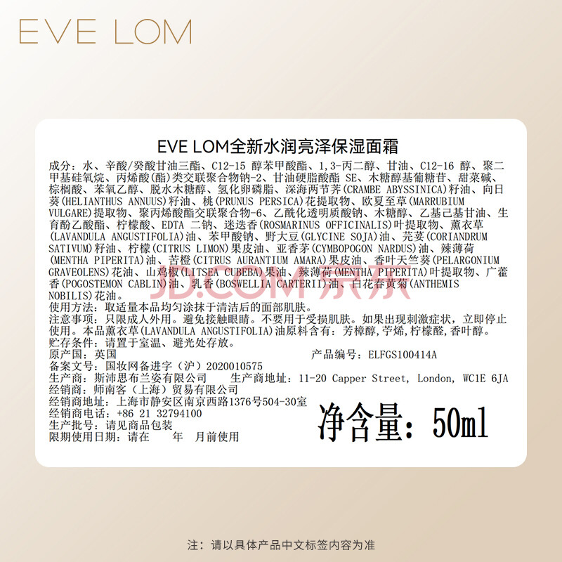 商品相册:EVE LOM伊芙珑滋养焕亮补水保湿女王面霜50ml生日礼物送女生第